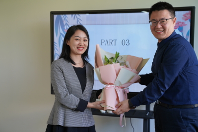 接着,学院工会主席杨静宽宣布了2020年新老教师结对名单,并为带教老师颁发聘书。拜师仪式上,五位新教师向各自的带教老师献上鲜花,表达对带教老师的尊重和感谢;带教老师则向新教师回赠礼物,希望新教师记录下每一个不同寻常而又意味隽永的成长瞬间。