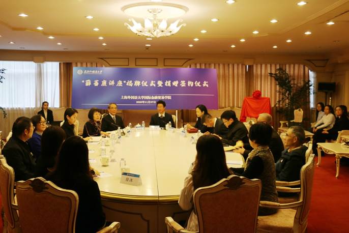 随后,薛蕃康先生的长子薛求知,复旦大学管理学院原副院长、学术委员会主任,作为薛先生家属代表与我校查明建副校长共同签署捐赠协议书,并与我院章玉贵院长共同为“薛蕃康讲座”揭牌,在场师生共同见证了这一激动人心的时刻。国际金融贸易学院将以此次捐赠和揭牌为契机,以立德树人为根本,贴近青年学生的需求,邀请高层次学者和专家定期举办讲座,培养更多高素质复合型的经济、金融与管理人才。