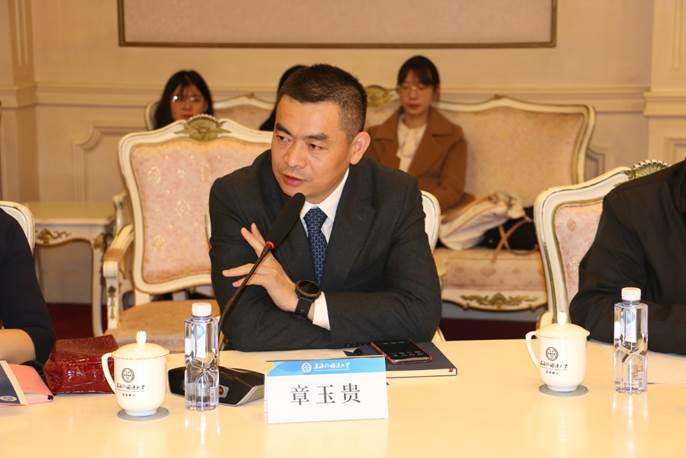 最后,章玉贵院长发表讲话,首先对薛蕃康老先生表达了怀念之情,关于薛老对上外学科建设的贡献和持续关注,章院长为之动容。此次讲座本质上是人才培养的一脉相承,以薛先生为代表的这一代学者的敬业精神今天仍值得我们思考学习。同时,章院长对学院建设提出两点期望:其一,注重学科点建设;其二,注重学生质量的培养。另外,在提及“薛蕃康讲座”时,章院长对讲座形式也提出了倡议和设想,希望讲座可以做成上外的一种品牌。