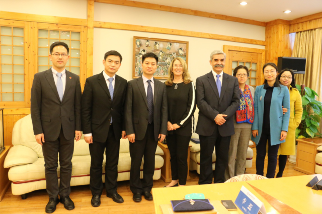 3月8日,美国圣地亚哥大学商学院院长Jaime Alonso Gómez教授和该校国际事务主管Denis Dimon博士访问上海外国语大学。上海外国语大学副校长张峰教授会见了来宾,双方就开展深层次国际合作交换了意见。我校国际金融贸易学院院长章玉贵教授、对外交流合作处副处长王征、国际金融贸易学院副院长张瑾教授、金融专业硕士项目主任李蕊副教授等参加了会见。