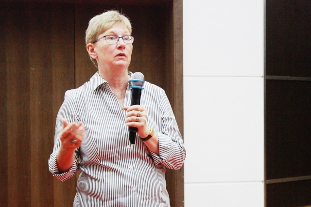 首先,康奈尔大学招生官为以图文结合的形式为我们简单介绍了康奈尔大学的近况,包括校园地点、人数以及历史成就、学生成就等等。作为世界顶级私立研究性大学的代表,康奈尔大学招生官以其丰富的招生经验,与我们分享一系列招生建议,并重点强调了“要诚实,不要夸大或歪曲。”在她的建议中,提到了兴趣与学术研究的关系,以及教授对毕业生申请的评论与看法,让同学们了解到名校需要学生们对专业有高度的热情。该环节最后,康奈尔大学招生官在现场抽取幸运观众,送上了她远从美国带来的精美礼物,并与三名幸运观众进行合影。